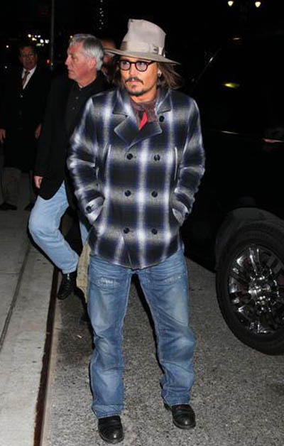 一身“破爛”的牛仔裝,還是很適合約翰尼-德普的。精心挑選的圍巾和手帕和這頂復古男式禮帽顏色呼應,小西裝馬甲也被從柜子中翻了出來套在身上。