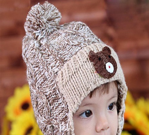手工編織帽 護(hù)耳帽,前面的小熊超可愛(ài)哦!