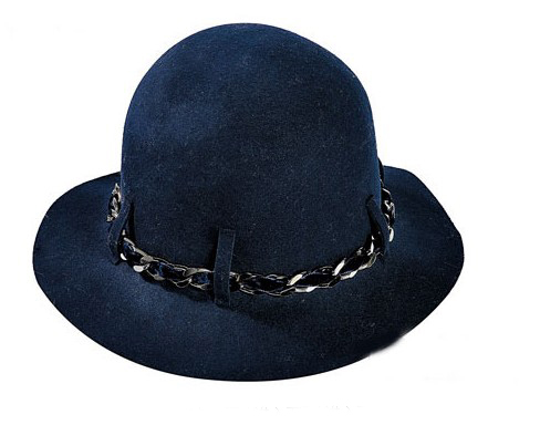 深藍(lán)色的帽子帶來(lái)一絲莊重和嚴(yán)肅。明亮的鏈條配飾為嚴(yán)肅中添加活潑與俏皮。質(zhì)地考究、帶有少許裝飾的別致款毛呢淑女帽,絕對(duì)是您冬季里不可缺少的服飾單品。 www.hzyichun.com 帽子廠家
