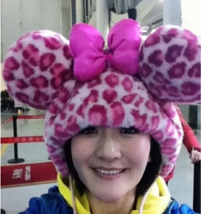 謝娜這款毛絨卡通帽子,紫紅色更有甜美可愛(ài)的感覺(jué),很小女生哦。