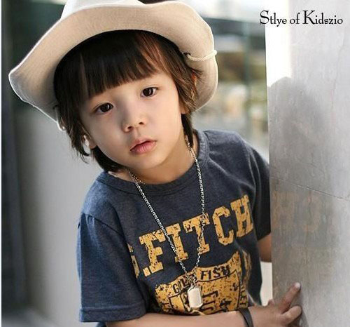 大大的眼睛,迷茫的眼神,有沒有覺得很有小王子的氣質(zhì)呢!小孩帶的童帽,并不一定只有棒球帽,你看,這頂咖啡色的小禮帽,就把孩子小大人一般的無邪襯托出來了;藏青色的短袖,帶著小首飾,淺色而個(gè)性的牛仔帽戴在孩子的頭上別有一番滋味。