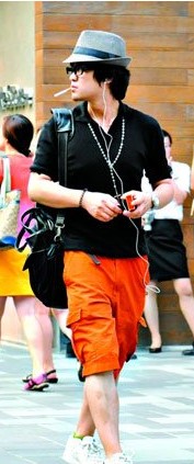 夏日街頭標(biāo)準(zhǔn)的陽光質(zhì)感潮男裝扮,雖然并無特別搞怪之處,但黑色TEE與橙色短褲配白色波鞋的造型,怎么穿都經(jīng)典時(shí)髦。一條低調(diào)的長(zhǎng)項(xiàng)鏈與后側(cè)微微翹起的嘻哈運(yùn)動(dòng)帽,帶來了男人的小俏皮。
