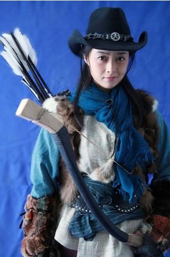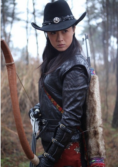一身全黑的裝扮,手冷兵器箭,犀利的眼神中充滿著殺氣,頭上的這款西部牛仔帽,更突顯了帥氣的俠女形象。就這樣一位抗日女俠形象,就這么深深的留在觀眾的心中了.