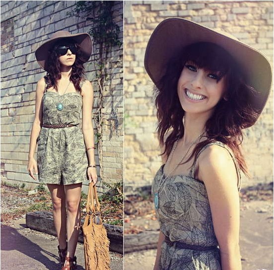 復(fù)古款的吊帶裙與大檐帽的組合堪稱經(jīng)典,同樣的復(fù)古韻味卻帶出了意想不到的摩登感。有著神奇瘦臉作用的大檐帽更是為整體造型增添了一份濃濃的假日休閑感。同色系的腰帶搭配厚底涼鞋加強(qiáng)了造型的整體感。