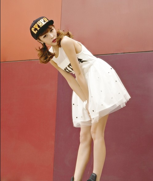 灰色棒球帽×最熱熒光色背心打造性感小可愛造型