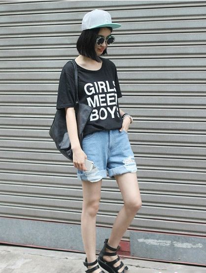玄色字母T恤搭配破洞牛仔短褲簡(jiǎn)單隨性,搭配天藍(lán)色的春秋5片帽就讓美眉與眾不同,潮爆的太陽(yáng)眼鏡加分了一身運(yùn)動(dòng)街頭風(fēng)的妝容,涼鞋的選擇也體現(xiàn)了美眉對(duì)于時(shí)尚搭配的功力。
