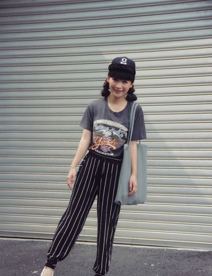 圖案T恤搭配牛仔A字裙的妝容青春活力,加上條紋的春秋5片帽時(shí)尚加倍,帆布鞋貫徹了街頭風(fēng)妝容,可愛(ài)中的帥氣讓小編可是喜歡的不得了噢!