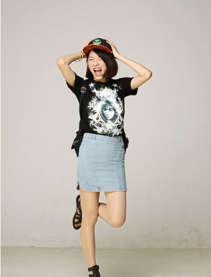 玄色人物圖案T恤搭配牛仔包臀裙街頭范十足,加上帥氣的棒球帽加分不少,時(shí)髦涼鞋展現(xiàn)美眉的時(shí)尚功力,讓頭頂“發(fā)亮”果然是街頭風(fēng)妝容的盡招。