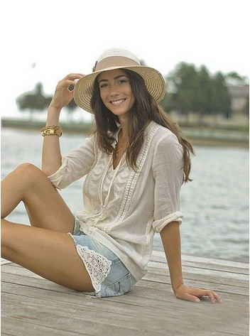 鉤花花朵裝飾的度假背心與黑色草帽搭配,非常具有戲劇感,華麗的蕾絲單品,配合淑女的蓬松卷發(fā),仿佛雷諾阿筆下中走出的古典少女。www.hzyichun.com 帽子廠家