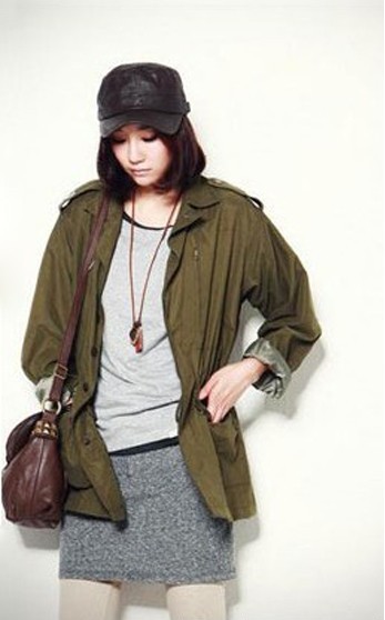 小編點評:軍裝大外套搭配灰色短裙穿出中性風(fēng)格,再搭配皮帽帥氣又時尚。