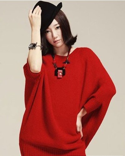 小編點評:大紅色蝙蝠袖毛衣溫暖熱情搭配黑色小禮帽,經(jīng)典用不過。