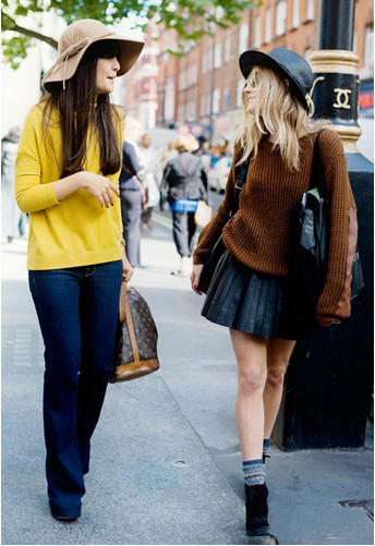 淑女范兒的寬檐荷葉邊帽子也可以搭配休閑帥氣的衣服,一頂迷人的帽子馬上讓全身搭配有了氣場(chǎng)!黑色百褶裙,褐色窟窿毛衫搭配黑色小禮帽,頗有搖滾風(fēng)的味道。www.hzyichun.com 帽子廠家